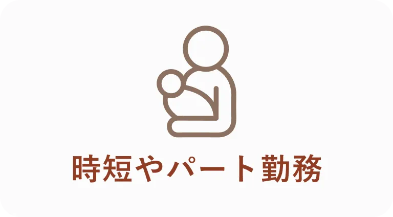 時短勤務、パート、産休・育休、ブランク復帰など、その時々の状況に合わせて、安心して働き続けられるようサポートしています。