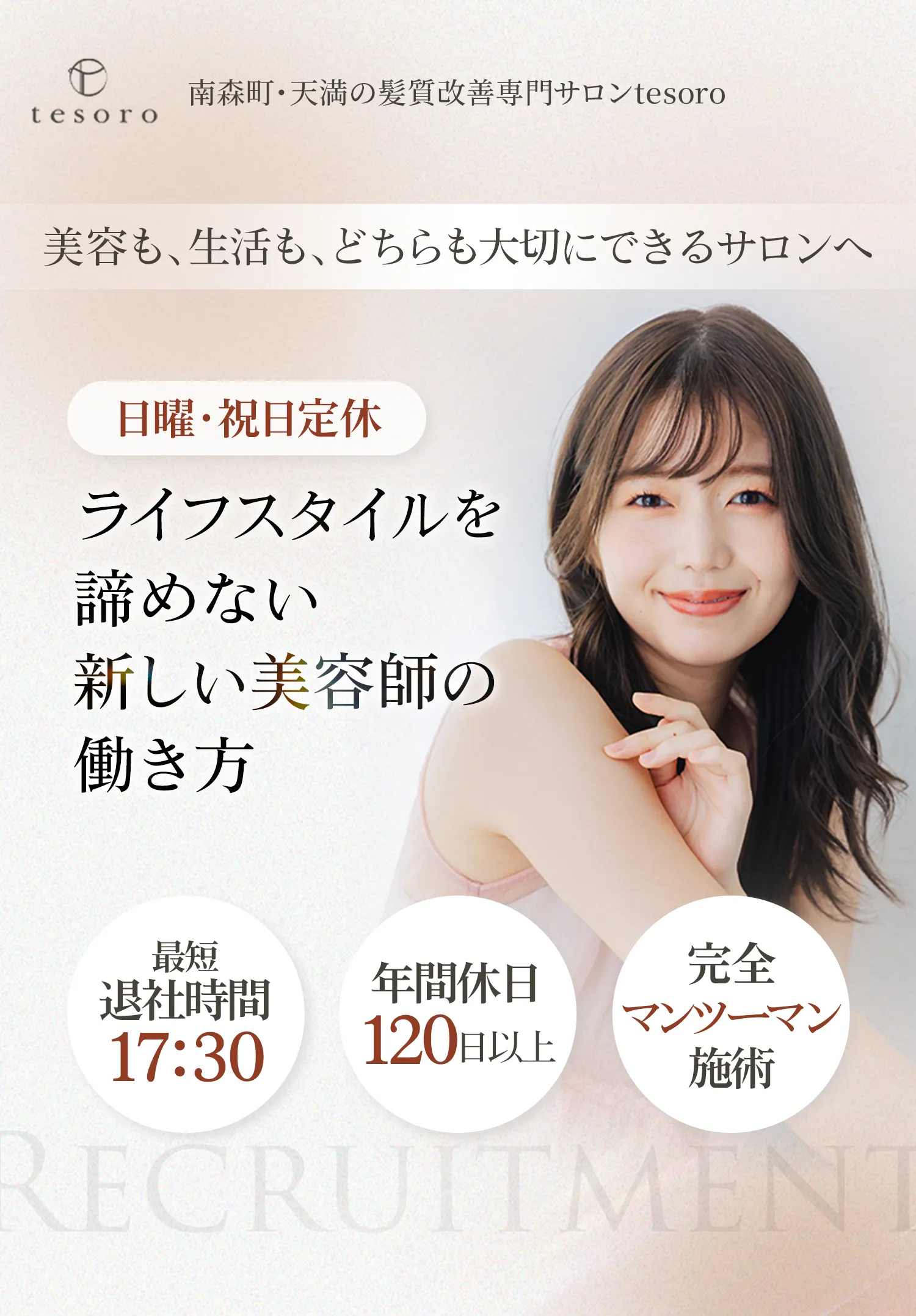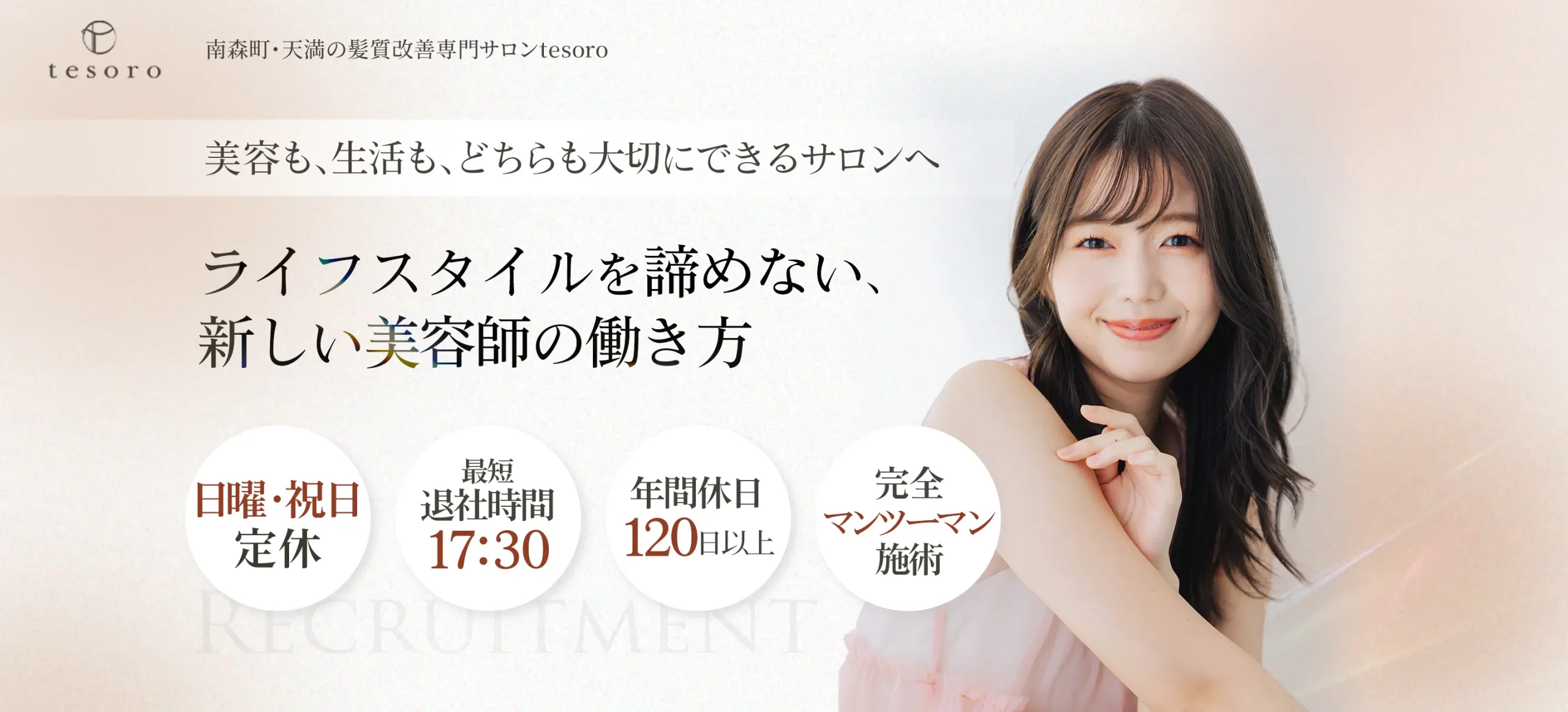 tesoroは、「頑張りすぎない美容師の働き方」を求める方に向いています。